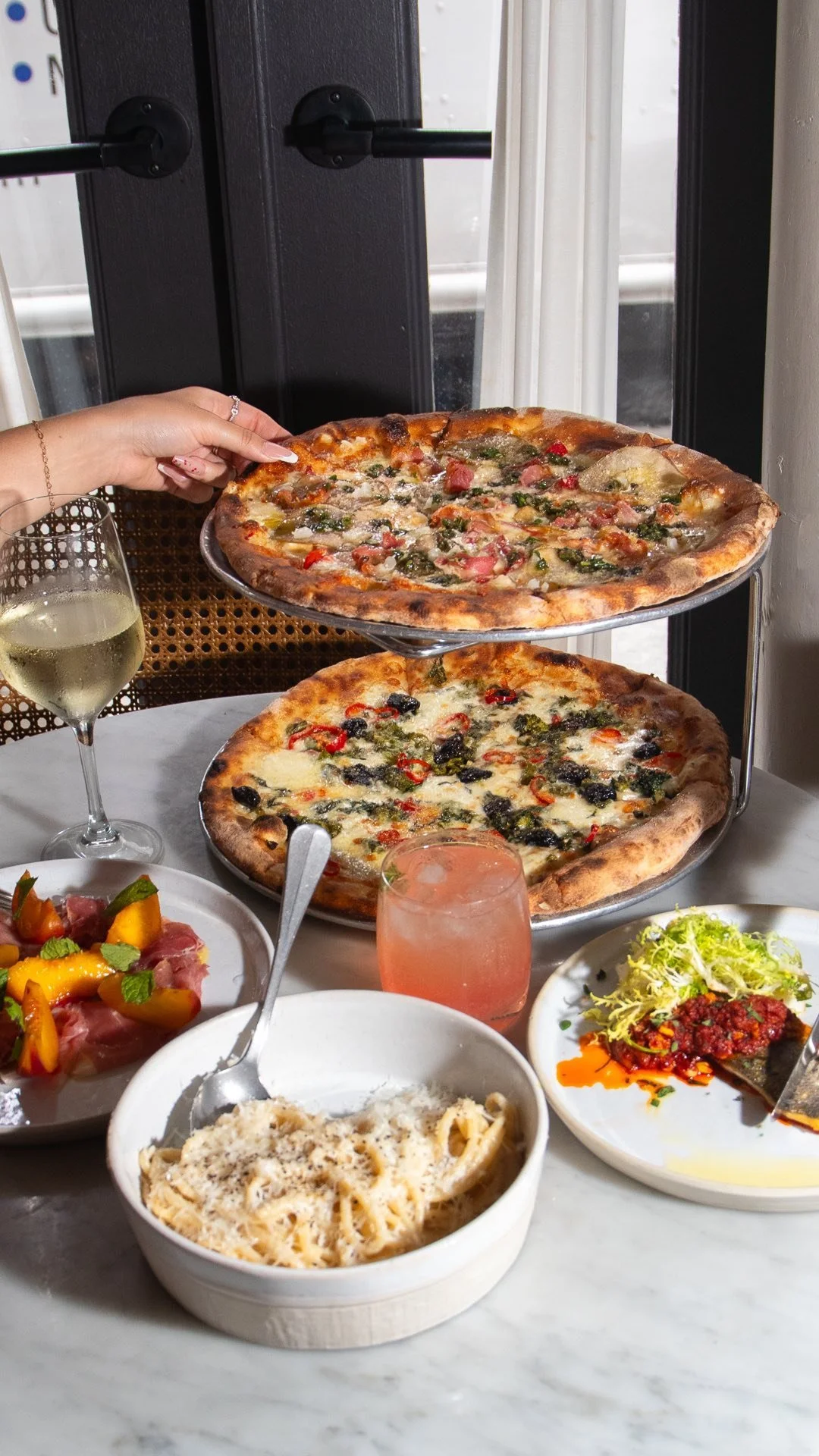 LOCATED ON THE CORNER OF 13TH AND SANSOM, MICHAEL SCHULSON’S PRUNELLA IS AN EFFORTLESSLY BEAUTIFUL SPACE, BOTH CASUAL AND ENERGETIC. ITS WHITE MARBLE-TOPPED BAR IS THE SHOWPIECE, COMPLEMENTED BY LUSH GREENERY, AND THE COLLECTIVE’S ICONIC PHOTO WALL. ITS FLOOR TO CEILING WINDOWS BRING IN THE BREEZE AND BRIGHTNESS. PRUNELLA’S MENU TRANSLATES THIS LIGHT AND AIRY VIBE TO THE PLATE, WITH ITS FRESH SEASONAL INGREDIENTS OF SMALL PLATES, FRESH PASTAS, AND ELEVATED TAKE ON AMERICAN STYLE PIZZA. SIGNATURE COCKTAILS AND A SMART SELECTION OF WINE AND BEER ARE PERFECTLY PAIRED.